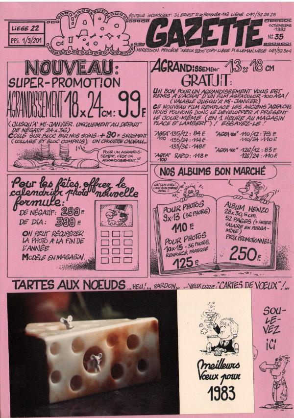 Serge Ernst, le frère du créateur des magasins photo "Labochrome" anima pendant 7 ans cette lettre publicitaire originale. A l'aide de dessins gags, de bande dessinée, de mini-jeux,... Elle présentait toutes les nouveautés, les promotions, les actions commerciales du magasin photo. A celà vient s'ajouter des gags et des informations pratiques dans le domaine de la photographie. Grâce à son contenu rédactionnel, cette publicité pouvait bénéficier du tarif postal préférentiel des périodiques. La Gazette était disponible dans les magasins "Labochrome" ou par abonnement postal gratuit sur demande.