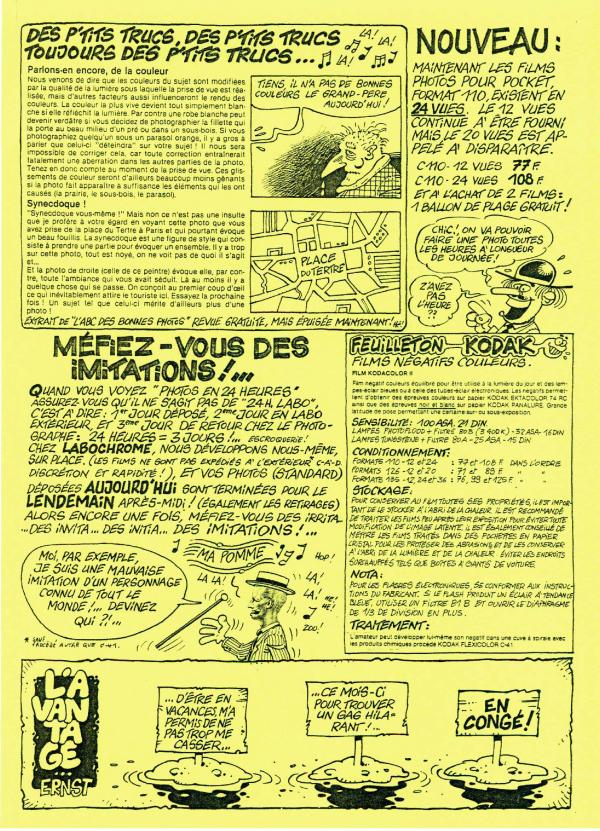 Serge Ernst, le frère du créateur des magasins photo "Labochrome" anima pendant 7 ans cette lettre publicitaire originale. A l'aide de dessins gags, de bande dessinée, de mini-jeux,... Elle présentait toutes les nouveautés, les promotions, les actions commerciales du magasin photo. A celà vient s'ajouter des gags et des informations pratiques dans le domaine de la photographie. Grâce à son contenu rédactionnel, cette publicité pouvait bénéficier du tarif postal préférentiel des périodiques. La Gazette était disponible dans les magasins "Labochrome" ou par abonnement postal gratuit sur demande.