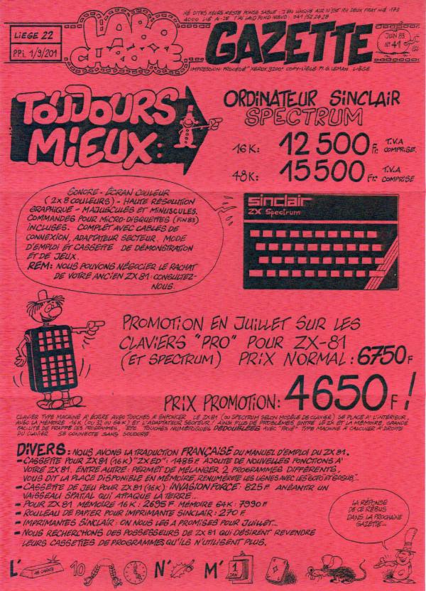 Serge Ernst, le frère du créateur des magasins photo "Labochrome" anima pendant 7 ans cette lettre publicitaire originale. A l'aide de dessins gags, de bande dessinée, de mini-jeux,... Elle présentait toutes les nouveautés, les promotions, les actions commerciales du magasin photo. A celà vient s'ajouter des gags et des informations pratiques dans le domaine de la photographie. Grâce à son contenu rédactionnel, cette publicité pouvait bénéficier du tarif postal préférentiel des périodiques. La Gazette était disponible dans les magasins "Labochrome" ou par abonnement postal gratuit sur demande.