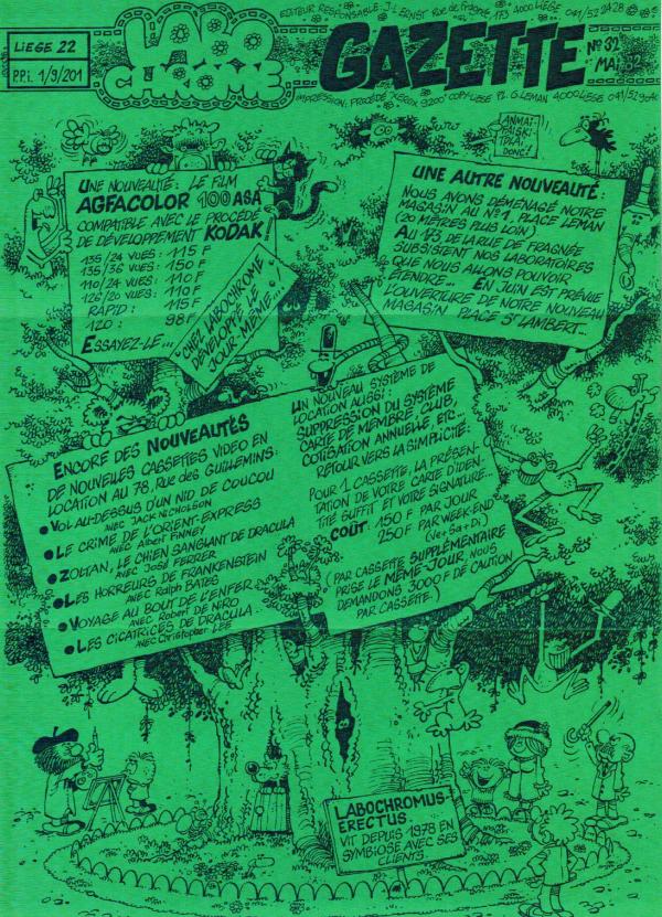 Serge Ernst, le frère du créateur des magasins photo "Labochrome" anima pendant 7 ans cette lettre publicitaire originale. A l'aide de dessins gags, de bande dessinée, de mini-jeux,... Elle présentait toutes les nouveautés, les promotions, les actions commerciales du magasin photo. A celà vient s'ajouter des gags et des informations pratiques dans le domaine de la photographie. Grâce à son contenu rédactionnel, cette publicité pouvait bénéficier du tarif postal préférentiel des périodiques. La Gazette était disponible dans les magasins "Labochrome" ou par abonnement postal gratuit sur demande.