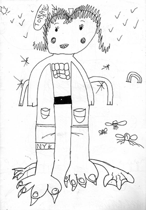 Fanzine de dessins d'enfants réalisé dans un atelier dessin dans une école de Scharbeek tenu par Felix Laurent.
